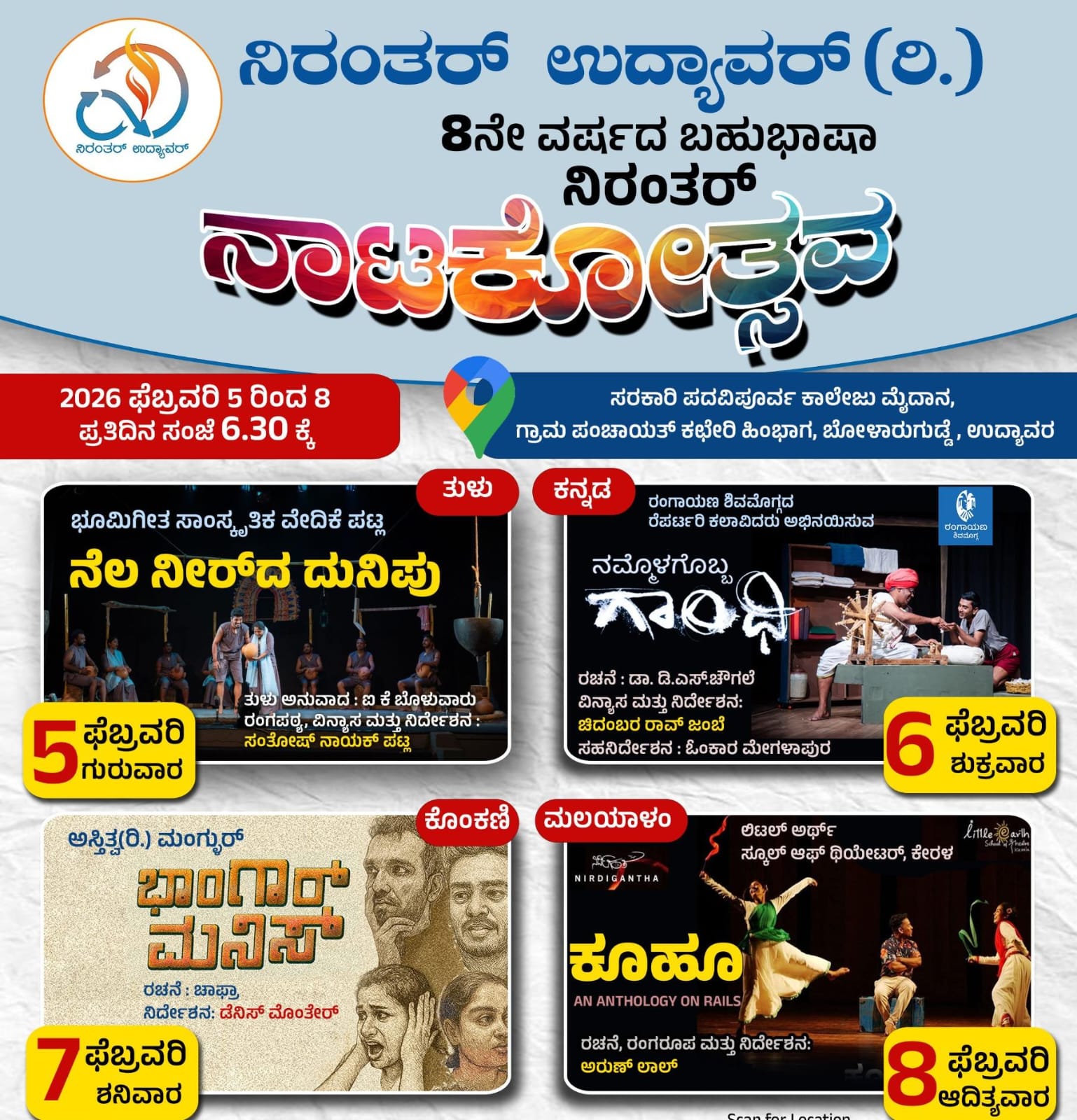 ನಿರಂತರ್ ಉದ್ಯಾವರ: ಫೆ.5 ರಿಂದ 8ರವರೆಗೆ ಬಹುಭಾಷಾ ನಿರಂತರ್ ನಾಟಕೋತ್ಸವ