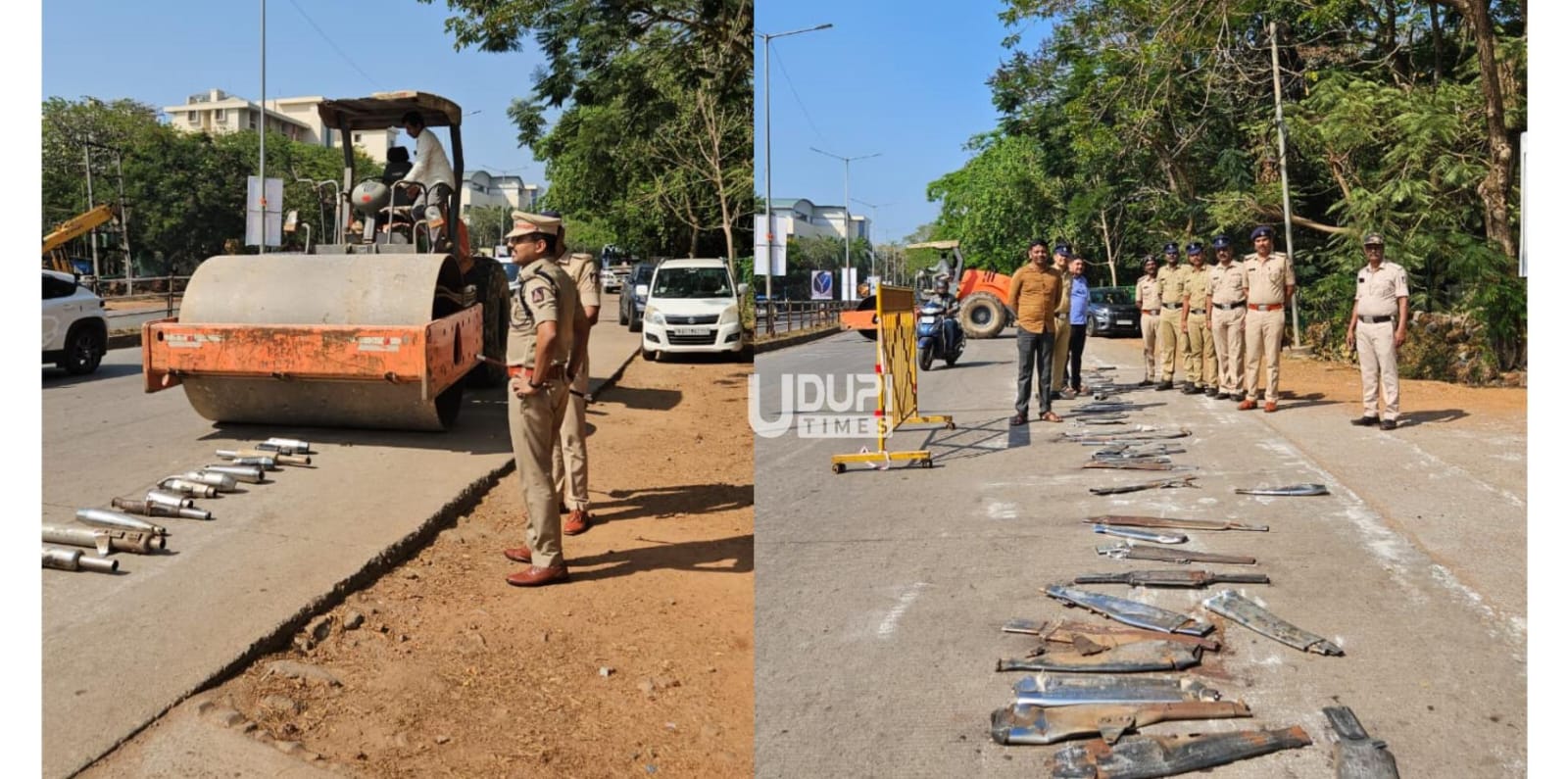 ಮಣಿಪಾಲ: ಬೈಕ್ಗಳಿಂದ ವಶಪಡಿಸಿಕೊಳ್ಳಲಾದ 120 ಸೈಲೆನ್ಸರ್ಗಳ ನಾಶ